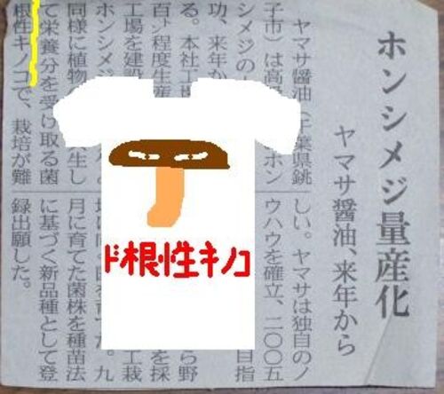 謎のメモの話をいつまでも引っ張って申し訳ない。今日も一昨日の日記に書いた新聞切り抜き「ホンシメジ量産化 ヤマサ醤油、来年から」の件である。いや、相変わらずわからないのだけど、客観的に見て、「もし蕃茄君がこの新聞を見たら、どこに注目し、どこを…