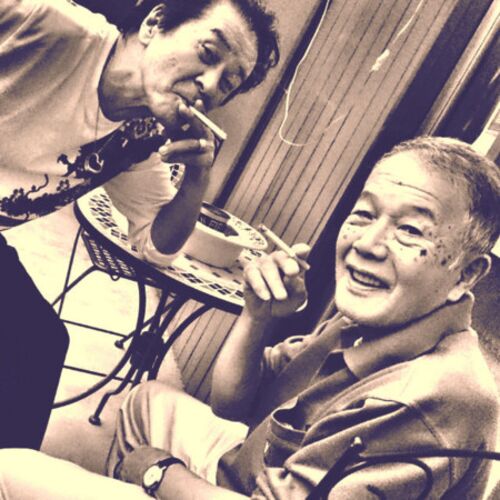 プレ千秋楽。丸山師在廊時に、ポルノの帝王久保新二さん来。 銭湯絵一筋63年とポルノ映画一筋50年、奇跡の遭遇。 ともにノンアルコーリストの甘党でヘビースモーカー。 渋い。年輪の競演。写真撮影は劇団「お笑い21世紀」のしのはら実加さん。 閉店間…