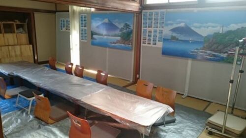 銭湯催事が続く。 今日と明日は当ビブリオにて銭湯背景画教室。 朝イチには会場設営終了。 昼前に主催者の「銭湯もりあげた〜い」事務局長さんと丸山師が相次いで来場。準備をすすめて参加者の到着を待つ。 続々来場し、定刻13時に開始。 12人中11人が初参加…