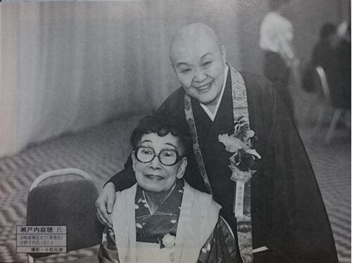 宇野千代さん(1887〜1996) 1992年秋、瀬戸内寂聴先生の「谷崎潤一郎文学賞」授賞式にて撮影しました。 編集していた「S」誌で、受賞記念近況エッセイご執筆とグラビア写真撮影を依頼していて、瀬戸内先生とは「授賞式会場にて撮影させていただく」というア…